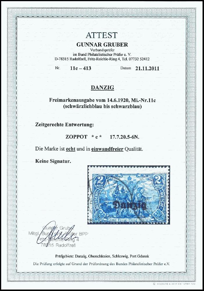 | Zusatzinformationen und Suchstichworte: | Dr. Reinhard Fischer 192. Auktion 19. - 20. Mai 2023 Los 1430 Danzig 2 Mark Deutsches Reich mit Aufdruck "Danzig", schwärzlichblau, seltene Farbvariante, zeitgerecht gestempelt "ZOPPOT * c * 17.7.20", tadellose Erhaltung, unsigniert, Fotoattest Gruber BPP: "echt und einwandfrei", Mi. 1.800.- Ausruf 350,00 EUR |