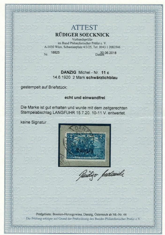 | Prüfer: | Soecknick, Rüdiger (BPP (Bund Philatelistischer Prüfer)) |