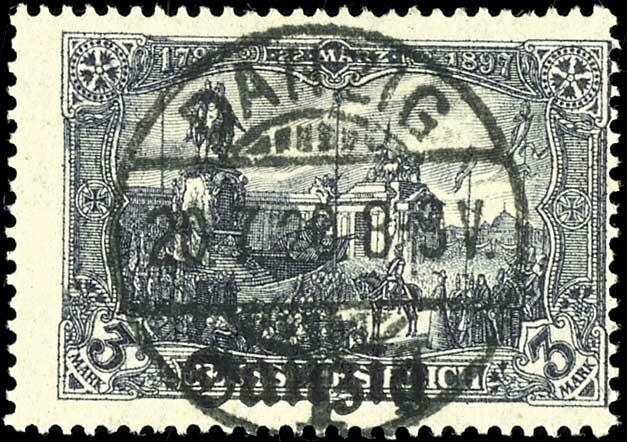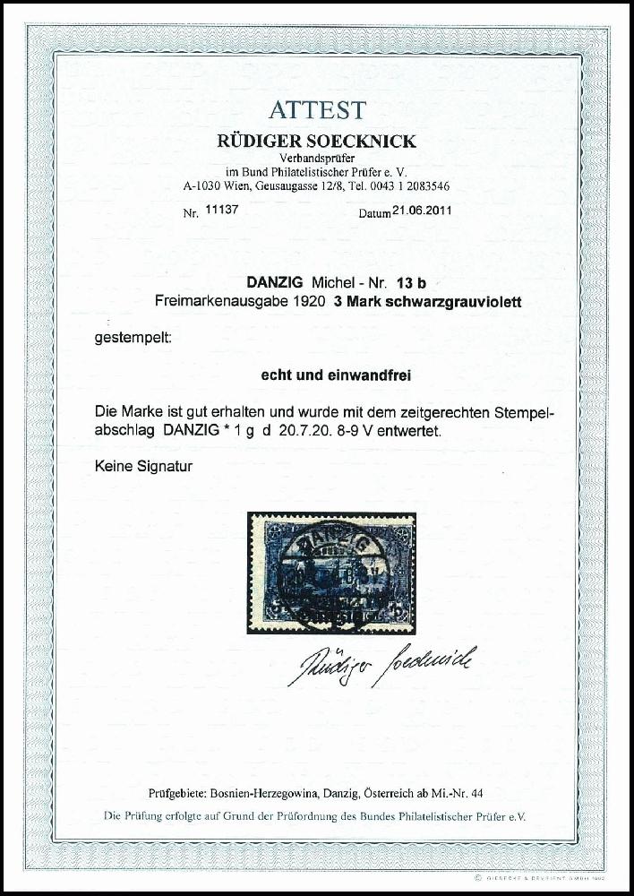 | Zusatzinformationen und Suchstichworte: | Dr. Reinhard Fischer 192. Auktion 19. - 20. Mai 2023 Los 1442 Danzig 3 Mark mit schwarzem Bdr.-Aufdruck "Danzig", schwarzgrauviolett, zeitgerecht entwertet "Danzig * 1 g d 20.7.20 8-9V", Fotoattest Soecknick BPP: "echt und einwandfrei", Mi. 1.200.- Ausruf 200,00 EUR |
