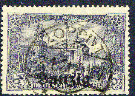 | Zusatzinformationen und Suchstichworte: | Veuskens 121. Auktion 10. - 11. August 2023 Los 1719 Danzig 3 Mark Germania 1920, in seltener b.-Farbe (schwarzgrauviolett), zeitgerecht gest. 'Zoppot 2.1.21'. In der linken unteren Ecke ist ein Zahn verkürzt und kl., dünne Stelle, weitere Mängel sind nicht vorhanden. Fotoattest Gruber BPP. M€ 1.200,-- Ausruf 120,00 EUR |