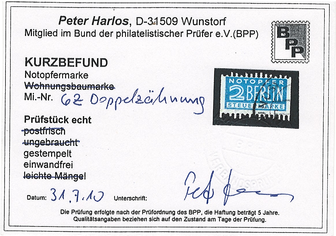| Prüfgebiet: | Alliierte Besetzung Notopfer- und Wohnungsbaumarken |