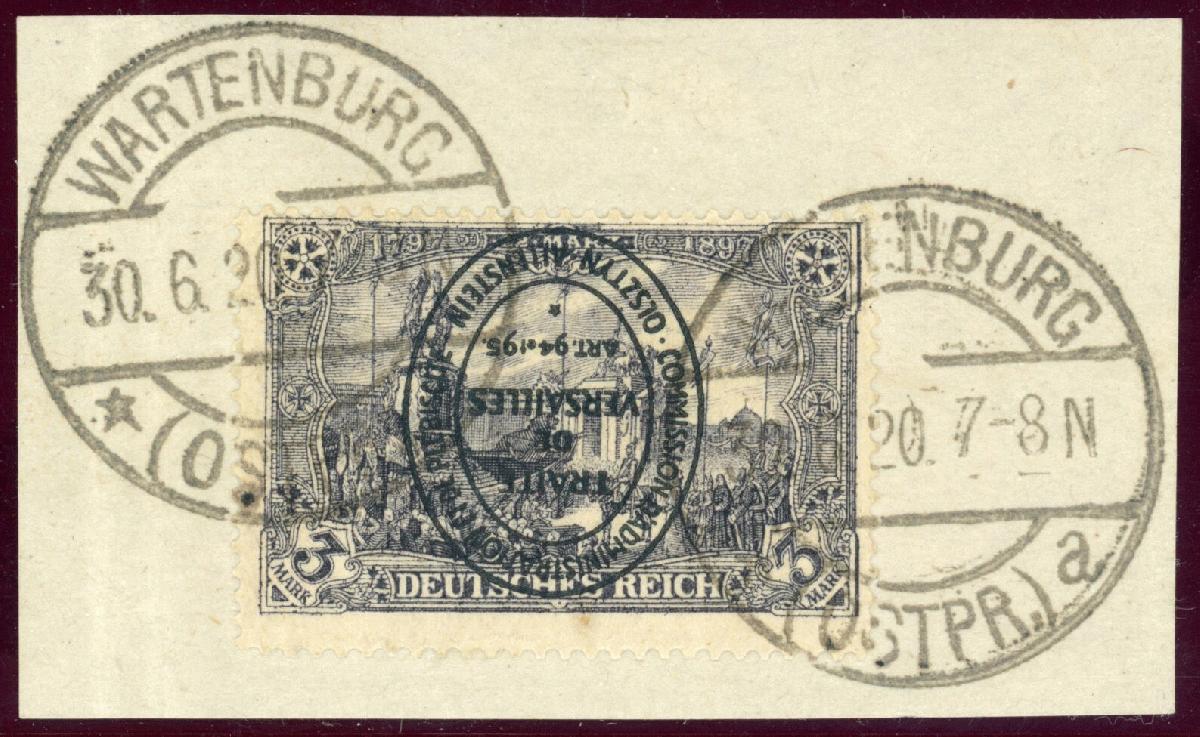 | Zusatzinformationen und Suchstichworte: | Klüttermann - 6. Auktion 27. Juli - 4. August 2023 Los 6295 Allenstein 3 Mark mit kopfstehendem Aufdruck auf Luxusbfst. mit 2mal WARTENBURG 30.6.20, Liebhaberstück dieser seltenen Abart mit FA Gruber (2021) und Hey, Mi. in keiner Erhaltung mit Preis gelistet Ausruf 750,00 EUR |