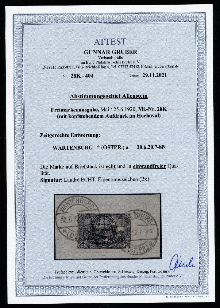 | Prüfer: | Gruber, Gunnar (BPP (Bund Philatelistischer Prüfer)) |