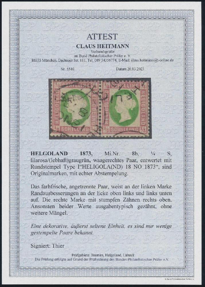 | Prüfer: | Heitmann, Claus (BPP (Bund Philatelistischer Prüfer)) |