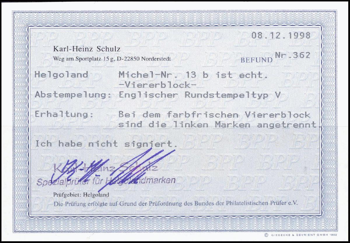| Zusatzinformationen und Suchstichworte: | Württembergisches Auktionshaus 142. Versteigerung 23.-24. Juni 2023 Los 2631 Altdeutschland Helgoland 5 Pfg., farbfrischer, gestplt. Pracht-Viererblock (li. min. Antrennung), Fotobefund Schulz BPP Zuschlag 90,00 EUR |