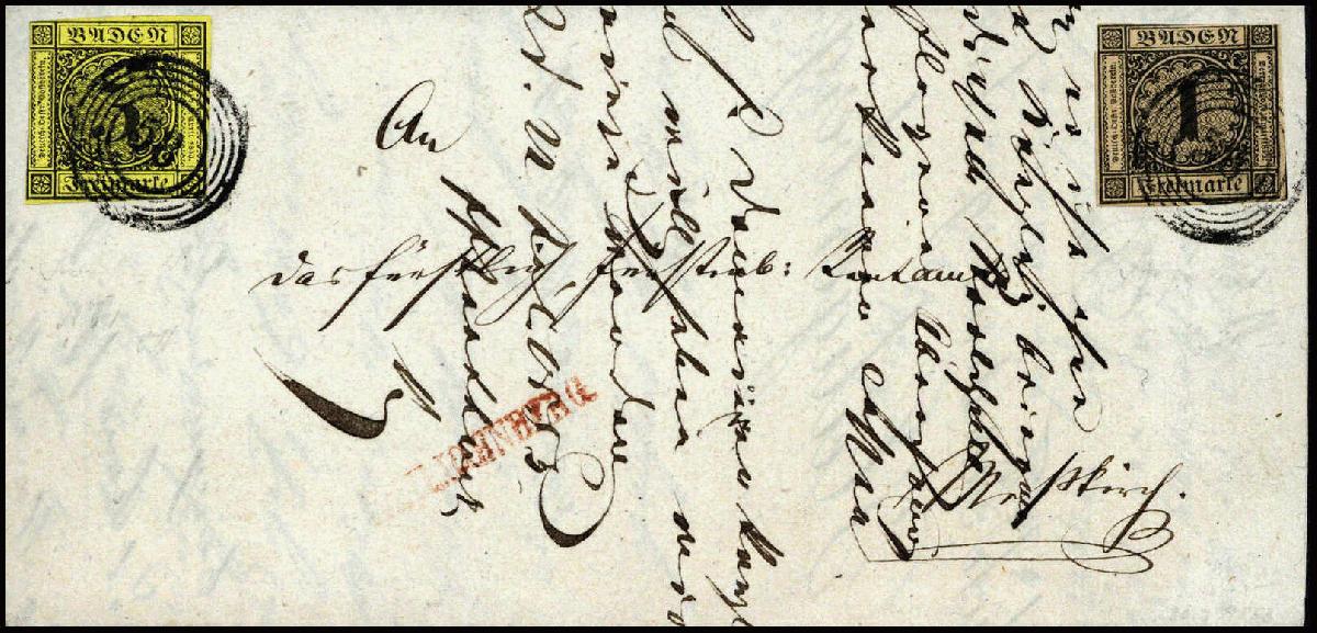 | Zusatzinformationen und Suchstichworte: | Württembergisches Auktionshaus 142. Versteigerung 23.-24. Juni 2023 Los 1425 Altdeutschland Baden 1 Kr. mit 3 Kr. a. gelb, vorzüglich frische 4-Kr.-Bestellgeld-Frankatur, üblich geschnitten, auf blauem Brief nach Messkirch, zwei sauber aufges. Stempel "58" und roter Aufgabe-L1 HEILIGENBERG. Ein interessanter Brief, Fotoattest Stegmüller BPP ("Ursprüngliches Ganzstück mit seltener Stempelkombination"). Zuschlag 1.100,00 EUR |