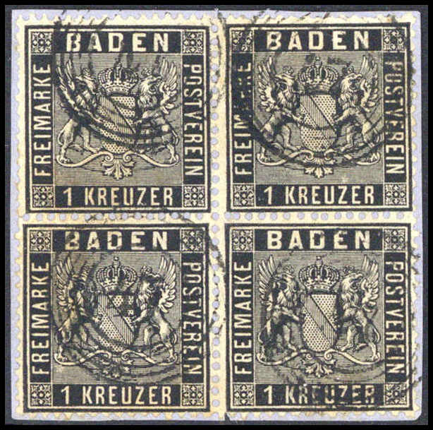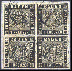 | Zusatzinformationen und Suchstichworte: | Württembergisches Auktionshaus 142. Versteigerung 23.-24. Juni 2023 Los 1453 Altdeutschland Baden 1 Kr. lackschwarz, prachtvoller Viererblock in außergewöhnlich tiefer Farbe auf Briefstück (eine Marke unten kl. Randfleckchen), zentr. Stempel "47" GEISINGEN, Fotoattest Englert BPP Zuschlag 450,00 EUR |