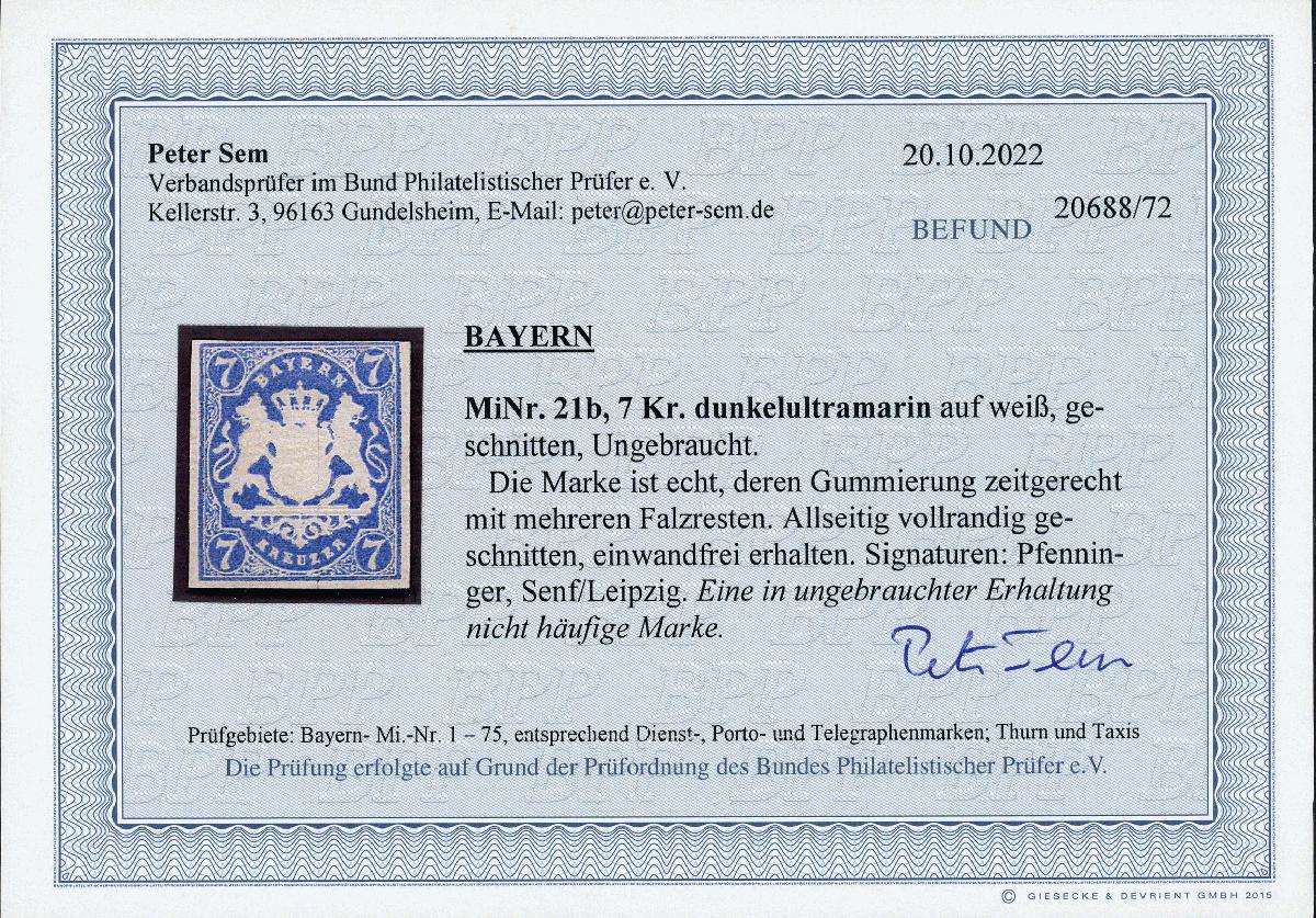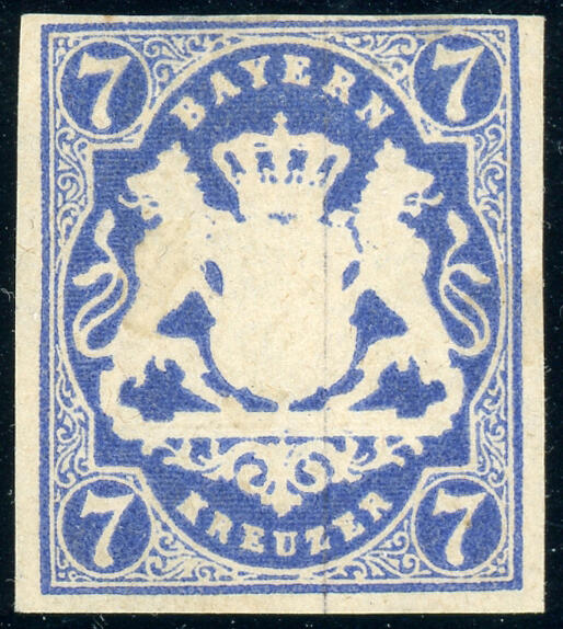 | Zusatzinformationen und Suchstichworte: | Klüttermann - 6. Auktion 27. Juli - 4. August 2023 Los 582 Altdeutschland Bayern 7 Kr. dunkelblau, voll- bis breitrandiges ungebrauchtes Kabinettstück der seltenen Marke, FB Sem Katalogwert: 500 Ausruf 200,00 EUR |