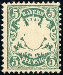 | Zusatzinformationen und Suchstichworte: | Klüttermann - 6. Auktion 27. Juli - 4. August 2023 Los 688 Altdeutschland Bayern 5 Pfg. dunkelblaugrün, ungebrauchtes Luxusstück der seltenen Marke, KB Sem Katalogwert: 400 Ausruf 150,00 EUR |
