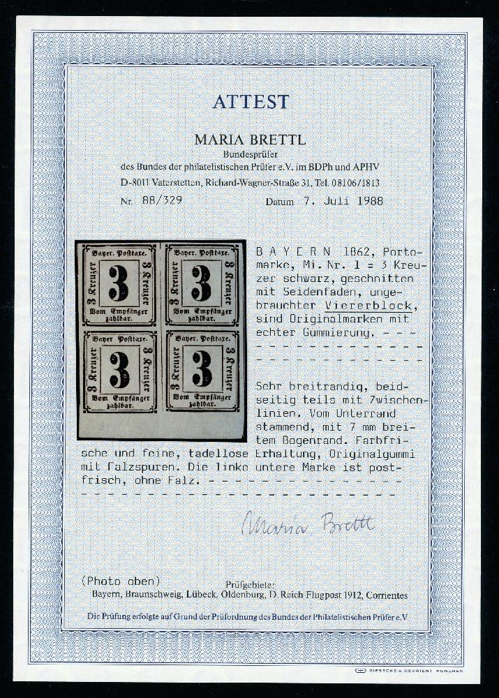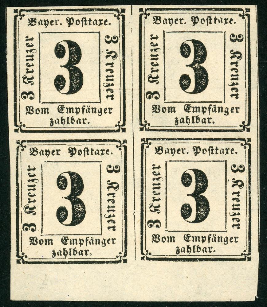 | Zusatzinformationen und Suchstichworte: | Klüttermann - 6. Auktion 27. Juli - 4. August 2023 Los 871 Altdeutschland Bayern 3 Kr. schw./weiß, breitrandiger ungebrauchter Luxusunterrandviererblock, dabei 1 Marke postfisch, FA Brettl Ausruf 450,00 EUR |