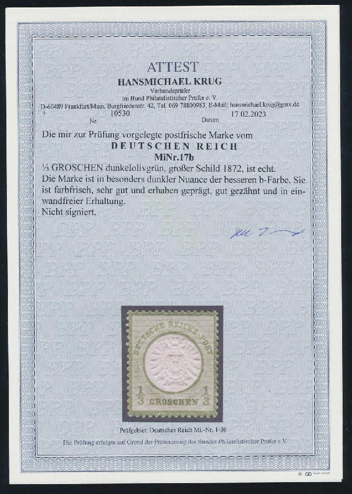 | Prüfer: | Krug, Hansmichael (BPP (Bund Philatelistischer Prüfer)) |