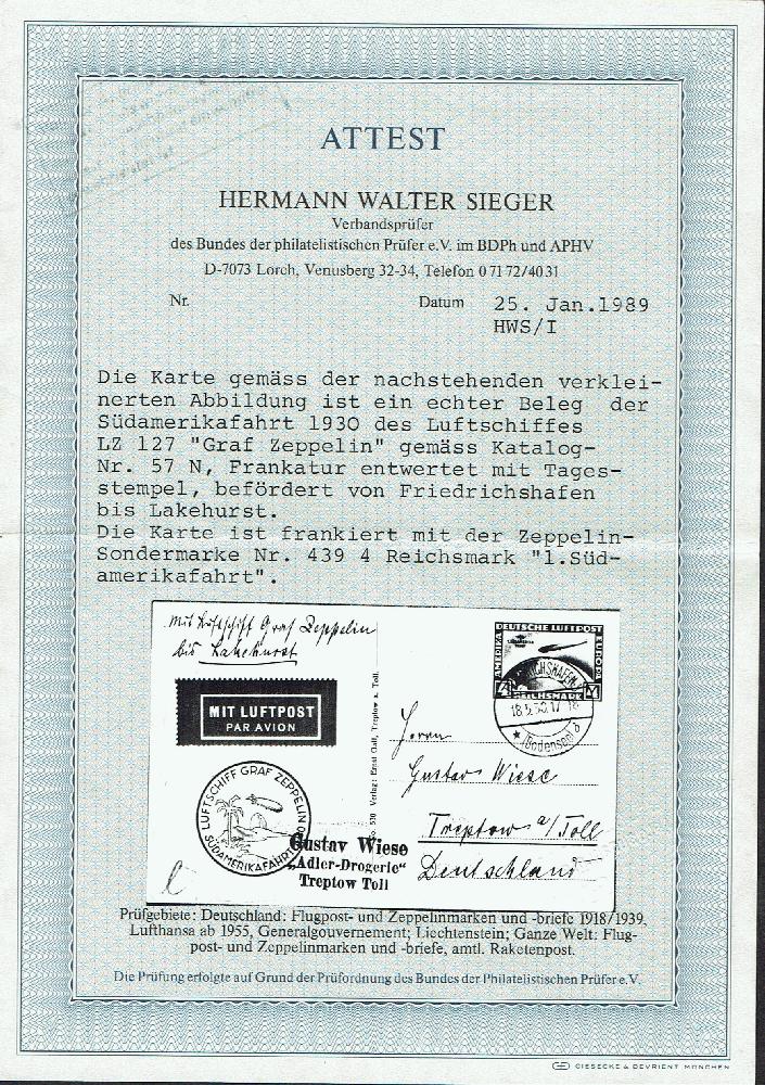 | Prüfgebiet: | Deutsches Reich Zeppelinpost (Belege) |