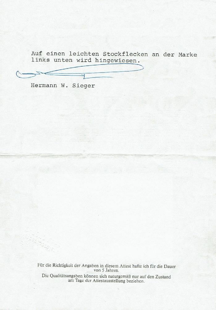 | Prüfer: | Sieger, Hermann Walter (BPP (Bund Philatelistischer Prüfer)) |
