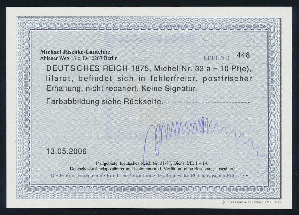 | Prüfgebiet: | Deutsches Reich 1871 - 1918 (Mi-Nr. 1 - 106) |