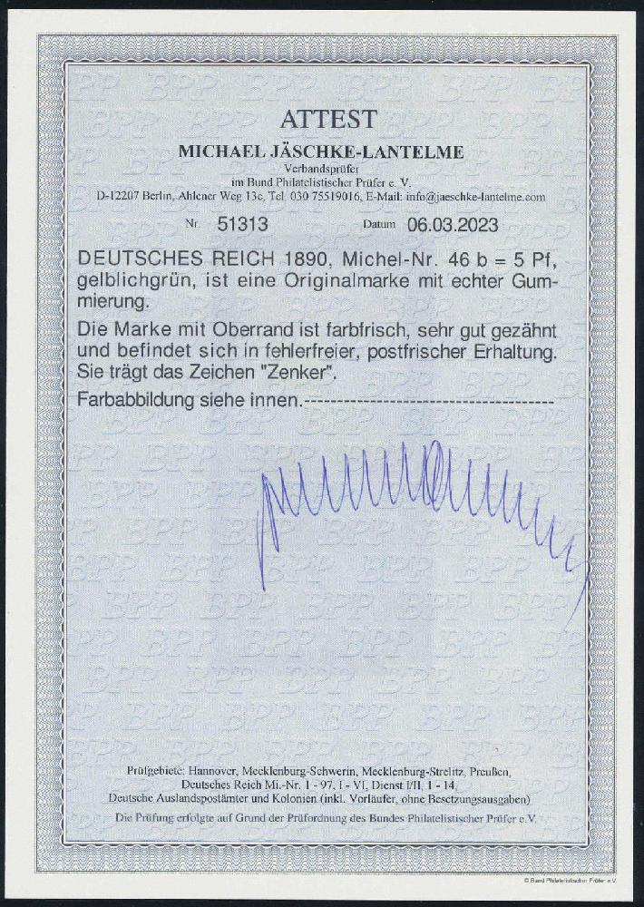 | Prüfer: | Jäschke-Lantelme, Michael (BPP (Bund Philatelistischer Prüfer)) |