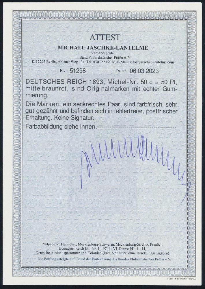 | Prüfer: | Jäschke-Lantelme, Michael (BPP (Bund Philatelistischer Prüfer)) |