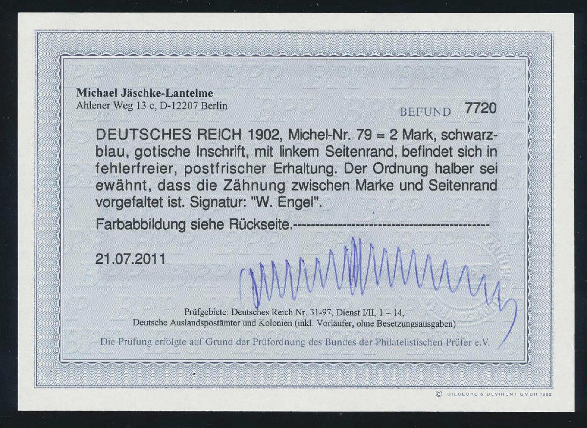 | Prüfgebiet: | Deutsches Reich 1871 - 1918 (Mi-Nr. 1 - 106) |