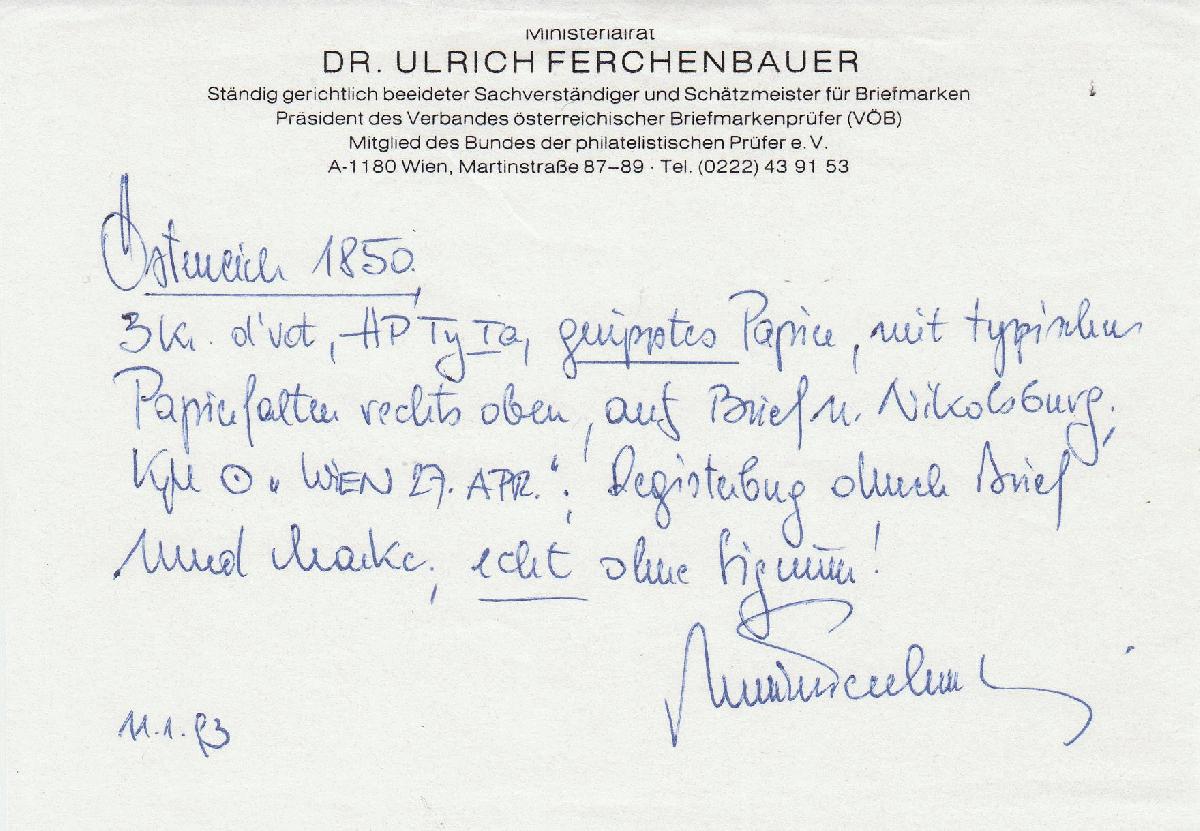 | Prüfer: | Ferchenbauer, Ulrich (VÖB (Verband Österreichischer Briefmarkenprüfer)) |