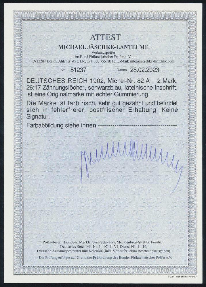 | Prüfer: | Jäschke-Lantelme, Michael (BPP (Bund Philatelistischer Prüfer)) |