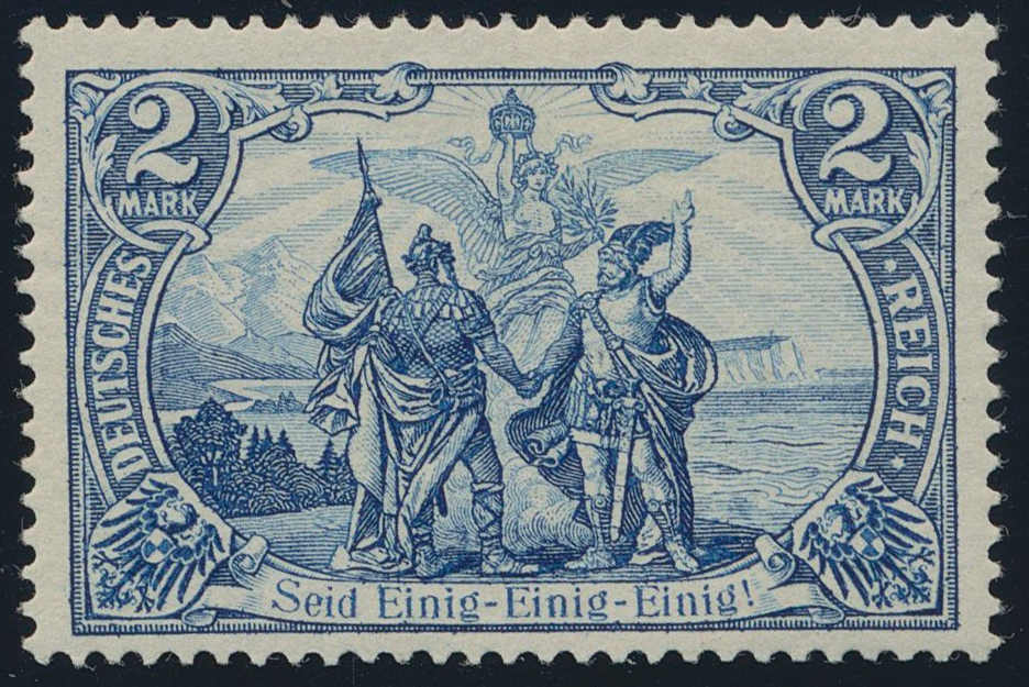 | Zusatzinformationen und Suchstichworte: | HBA 81. Auktion 11. - 13. Mai 2023 Los 840 (D) Deutsches Reich, Germania ohne WZ 1902, Deutsches Reich ohne Wz., gezähnt 26:17, 2 Mk., schwarzblau, lateinische Inschrift, tadellos postfrisches Kabinettstück, gepr. Zenker und gepr. Jäschke-Lantelme mit neuem Fotoattest, Mi. 500,-- Zuschlag 150,00 EUR |