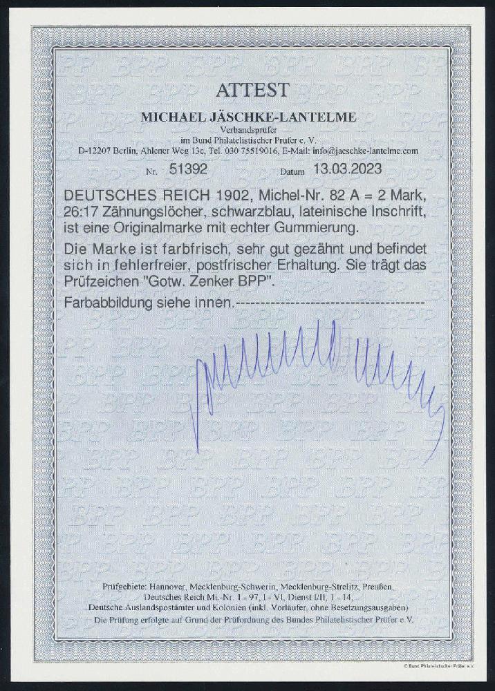 | Prüfer: | Jäschke-Lantelme, Michael (BPP (Bund Philatelistischer Prüfer)) |