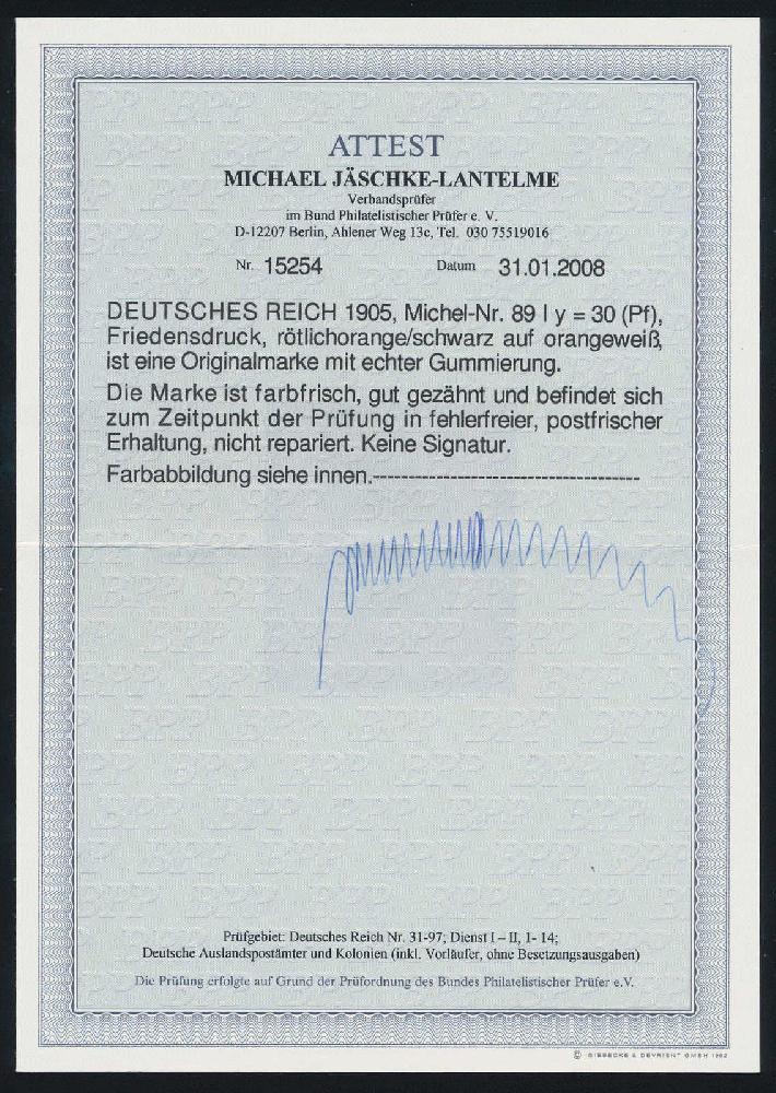 | Prüfer: | Jäschke-Lantelme, Michael (BPP (Bund Philatelistischer Prüfer)) |