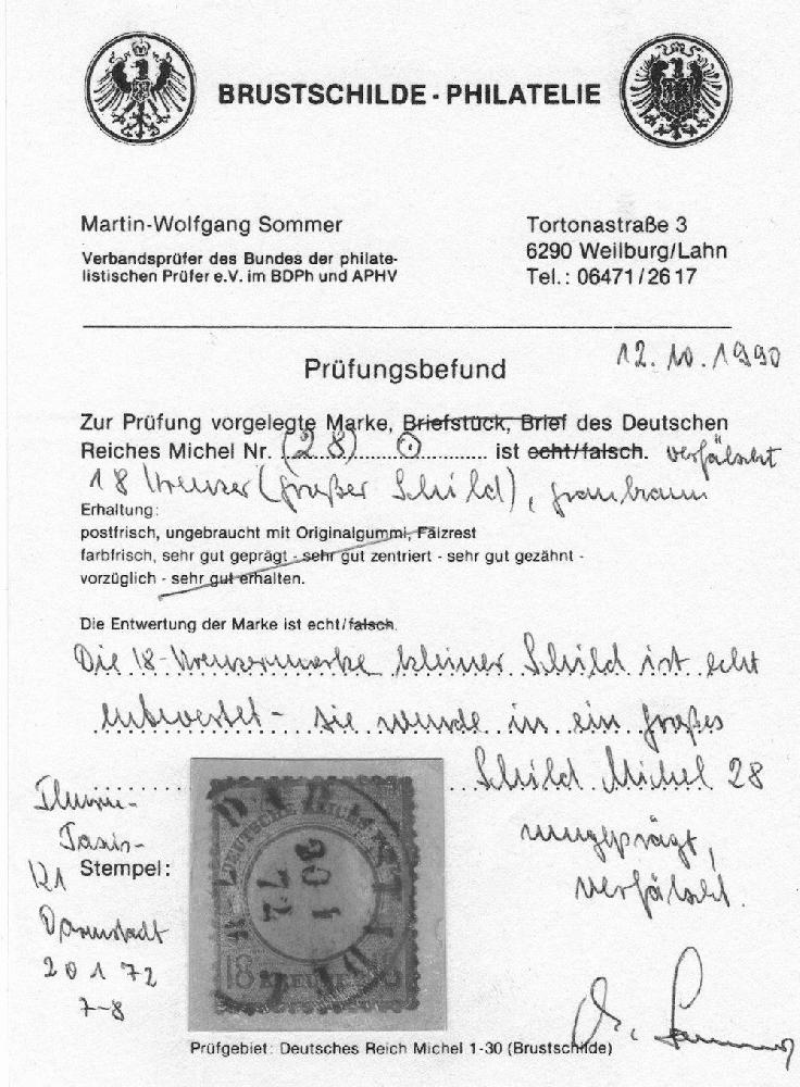 | Prüfer: | Sommer, Martin-Wolfgang (BPP (Bund Philatelistischer Prüfer)) |