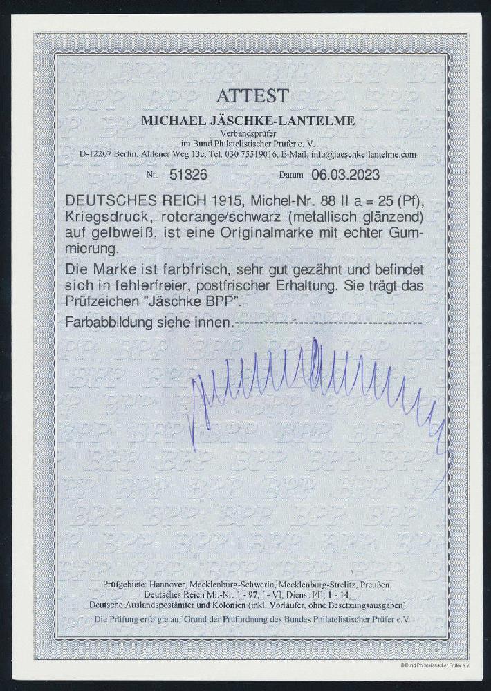 | Prüfer: | Jäschke-Lantelme, Michael (BPP (Bund Philatelistischer Prüfer)) |