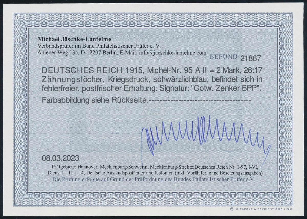 | Prüfer: | Jäschke-Lantelme, Michael (BPP (Bund Philatelistischer Prüfer)) |