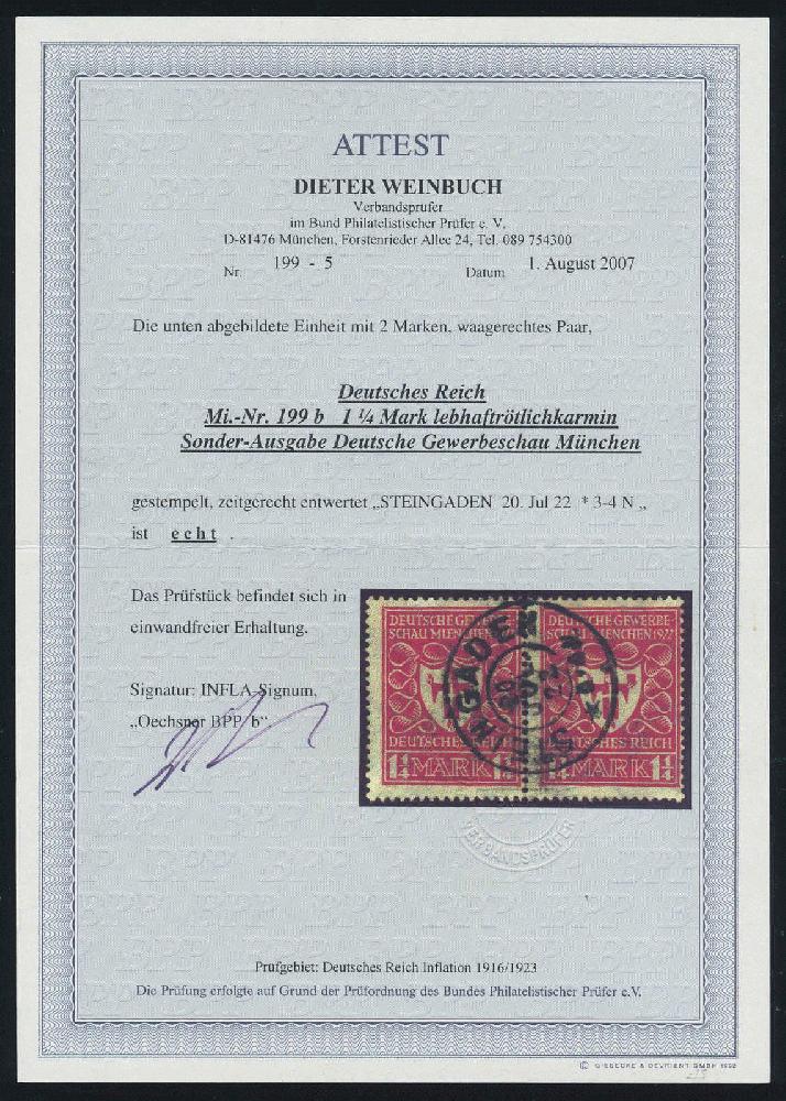 | Prüfgebiet: | Deutsches Reich 1919 - 1923 (Mi-Nr. 107 - 343) |