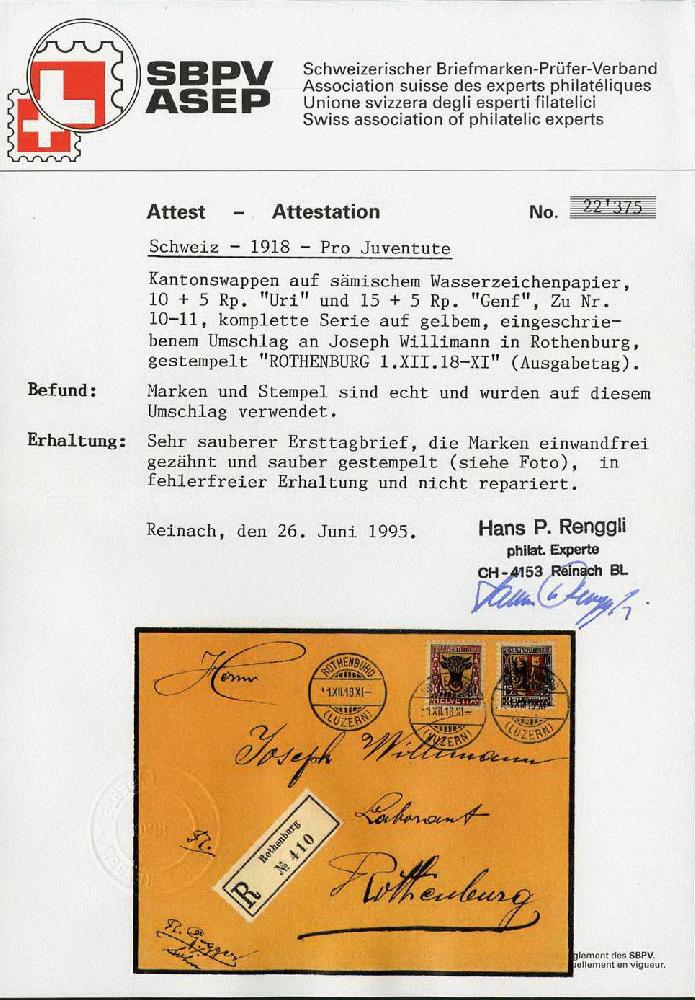 | Zusatzinformationen und Suchstichworte: | 72. Rölli Auktion 16. September 2023 Los 466 Schweiz Pro Juventute ROTHENBURG, seltener R-FDC auf gelbem Umschlag, SBPV Attest Renggli 1995 Ausruf 8.000,00 CHF |