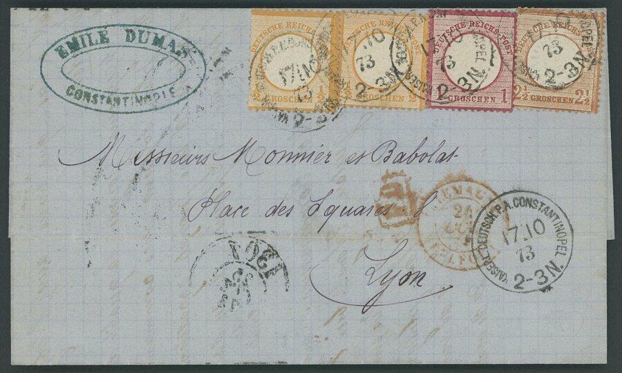 | Zusatzinformationen und Suchstichworte: | nordphila 492. Briefmarkenfernauktion 7. August 2023 Los 1848 Deutsche Auslandspost Türkei, Vorläufer 1873, Dreifarbenfrankatur: ½ Gr. orange (2x, rechte Marke im Format L 15), 1 Gr. karmin und 2½ Gr. mittelrötlichbraun mit Stempeln "CONSTANTINOPEL" auf Brief nach Frankreich, dekorativer Prachtbrief, RR!, Fotoattest Jäschke-L Ausruf 2.000,00 EUR |