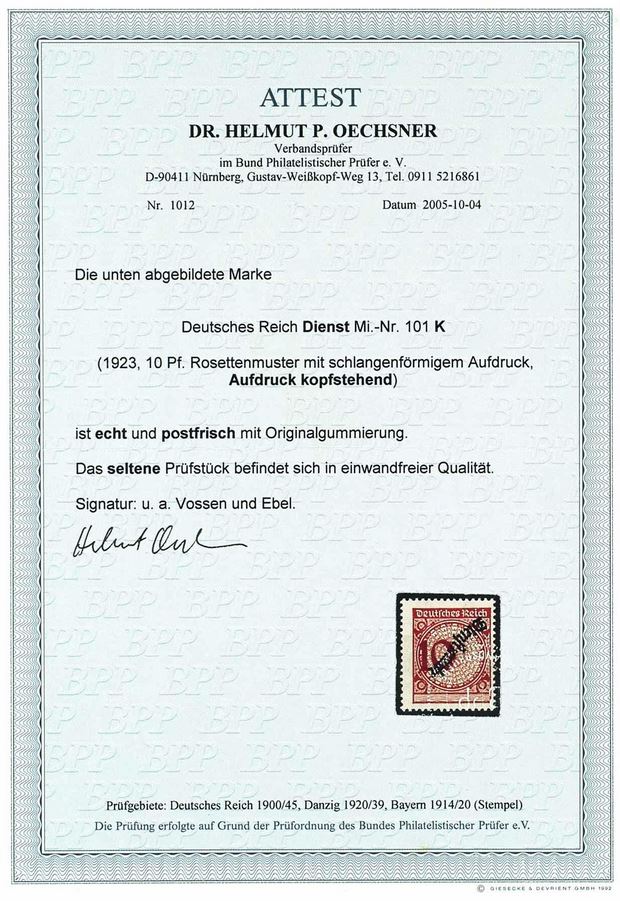 | Prüfer: | Oechsner, Helmut (BPP (Bund Philatelistischer Prüfer)) |