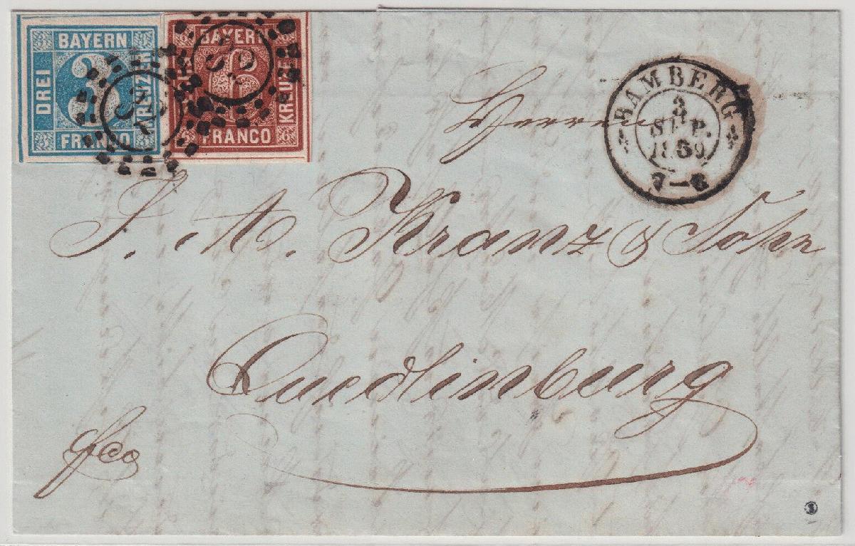 | Zusatzinformationen und Suchstichworte: | Südphila Peter Feuser 98. Auktion 13. Mai 2023 Los 214 Altdeutschland Bayern 3 Kr. hellblau und 6 Kr. rotbraun, breitrandig mit oMR "32" Bamberg auf Kabinettbrief nach Quedlinburg, Befund Sem Ausruf 40,00 EUR |