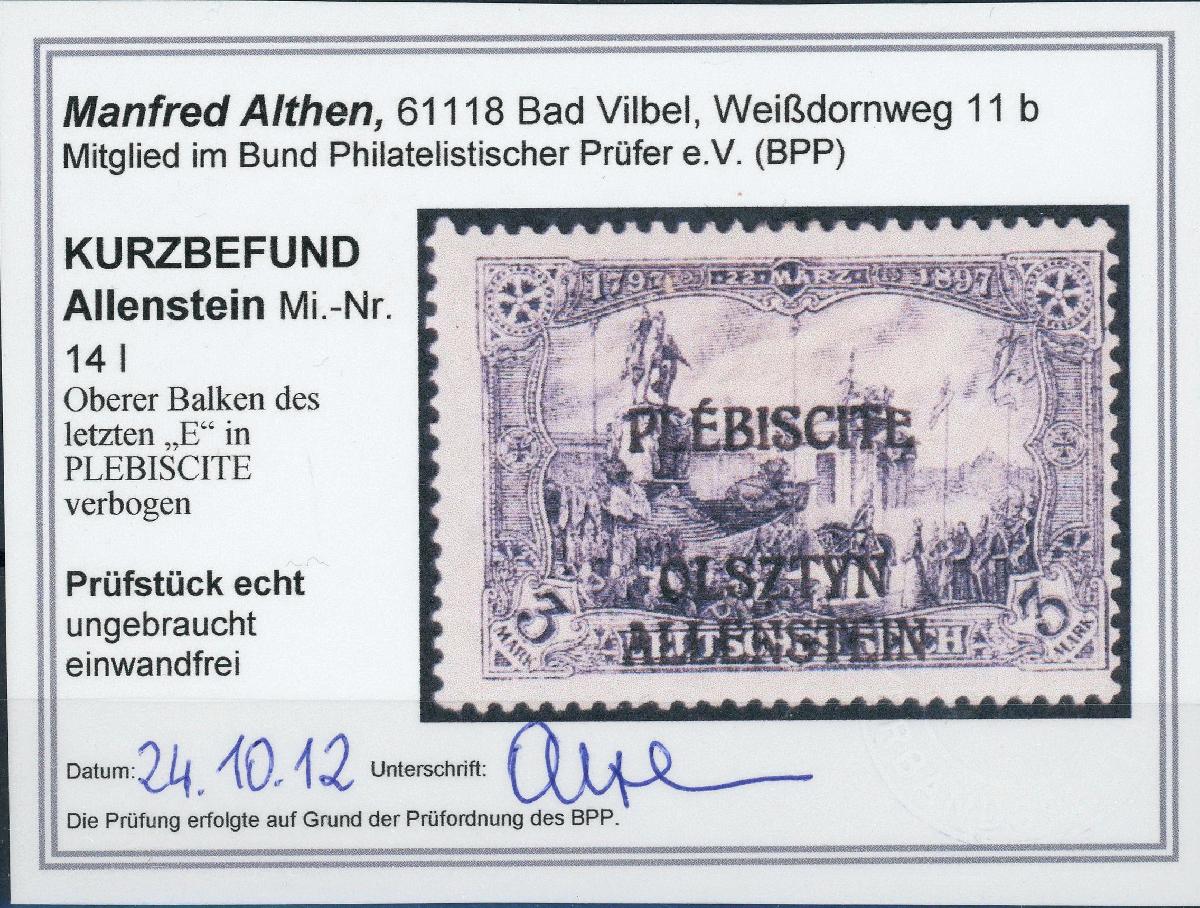 | Prüfer: | Althen, Manfred (BPP (Bund Philatelistischer Prüfer)) |