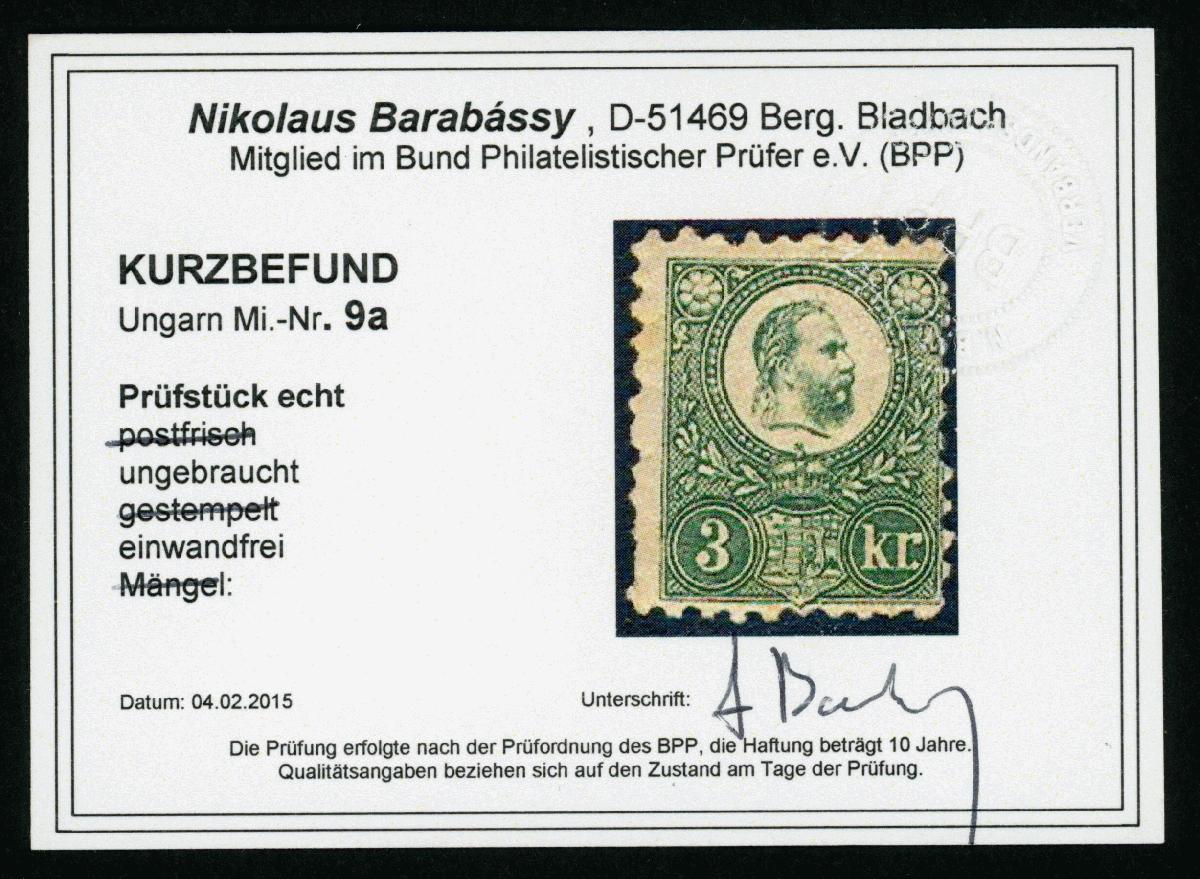 | Prüfer: | Barabassy, Nikolaus (BPP (Bund Philatelistischer Prüfer)) |