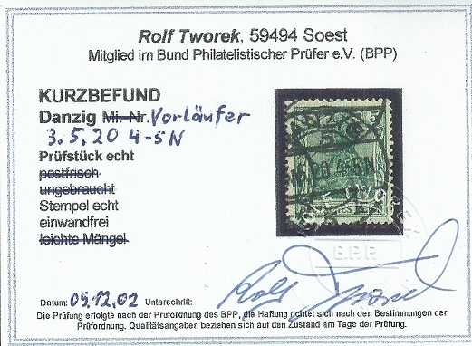 | Prüfer: | Tworek, Rolf (BPP (Bund Philatelistischer Prüfer)) |