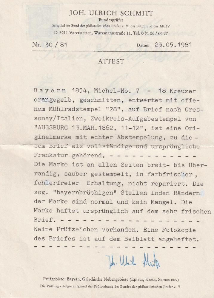 | Prüfer: | Schmitt, Joh. Ulrich (BPP (Bund Philatelistischer Prüfer)) |