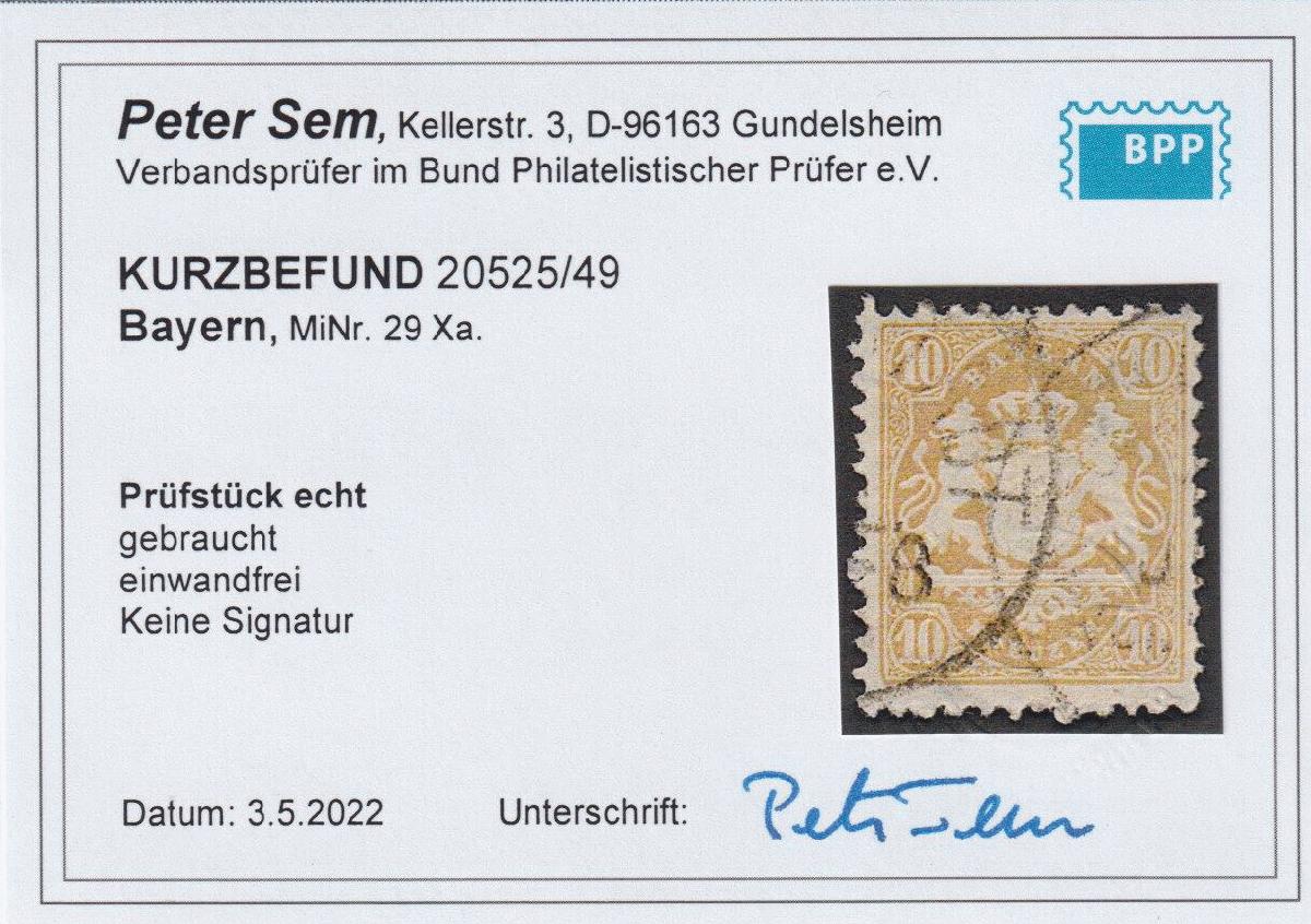 | Zusatzinformationen und Suchstichworte: | Südphila Peter Feuser 98. Auktion 13. Mai 2023 Los 327 Altdeutschland Bayern 10 Kr. gelb, vollzähniges, fein gestempeltes Prachtstück, Befund Sem (Mi. 450,-) Ausruf 100,00 EUR |