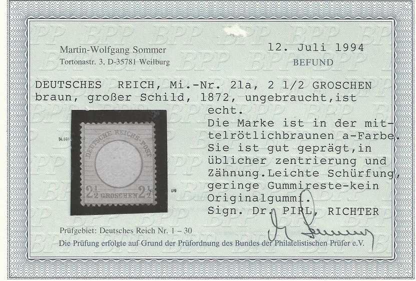 | Prüfer: | Sommer, Martin-Wolfgang (BPP (Bund Philatelistischer Prüfer)) |