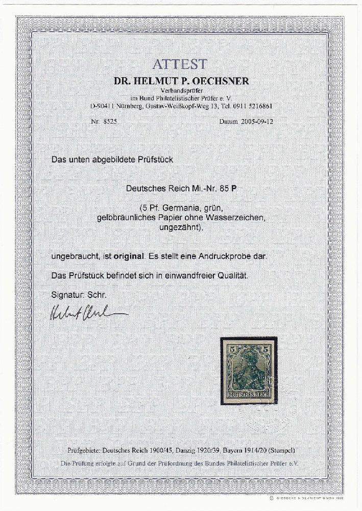 | Prüfgebiet: | Deutsches Reich Specimen, Probedrucke, Essay, Maschinenprobe |