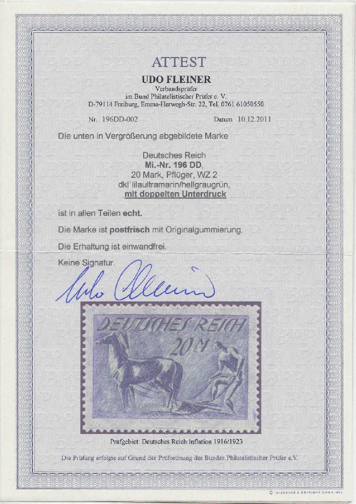 | Prüfer: | Fleiner, Udo (BPP (Bund Philatelistischer Prüfer)) |