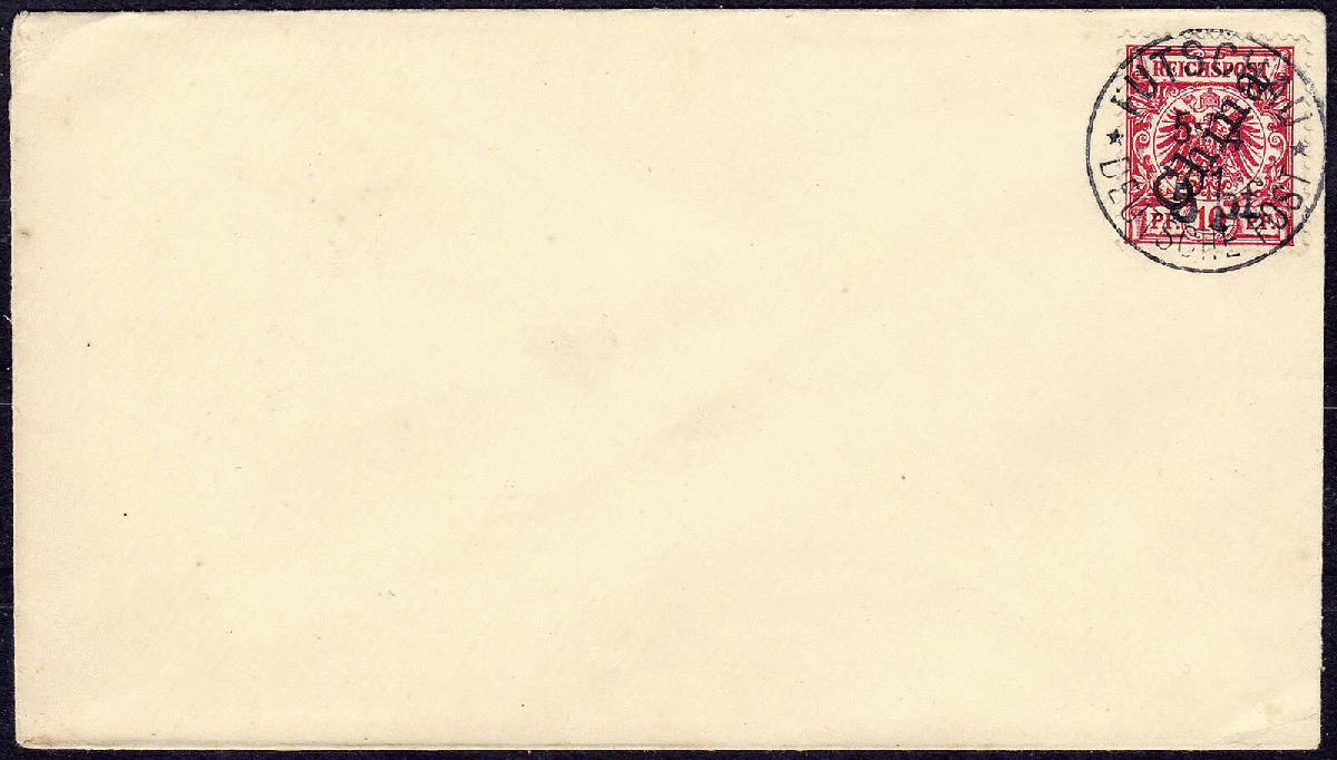 | Zusatzinformationen und Suchstichworte: | 159. und 160. Teutoburger Münzauktionen 11. - 16. September 2023 Los 4793 Deutsche Auslandspost China 5 pf. auf 10 Pf. Futschau 1900, lilarot, steiler Aufdruck, die Marke ist blankogestempelt auf unbeschriftetem Briefumschlag, ist farbfrisch, gut gezähnt und befindet sich in fehlerfrier, gebrauchter Erhaltung. Fotoattest Jäschke-Lantelme BPP. Mi. 1.000,-€ Ausruf 280,00 EUR |