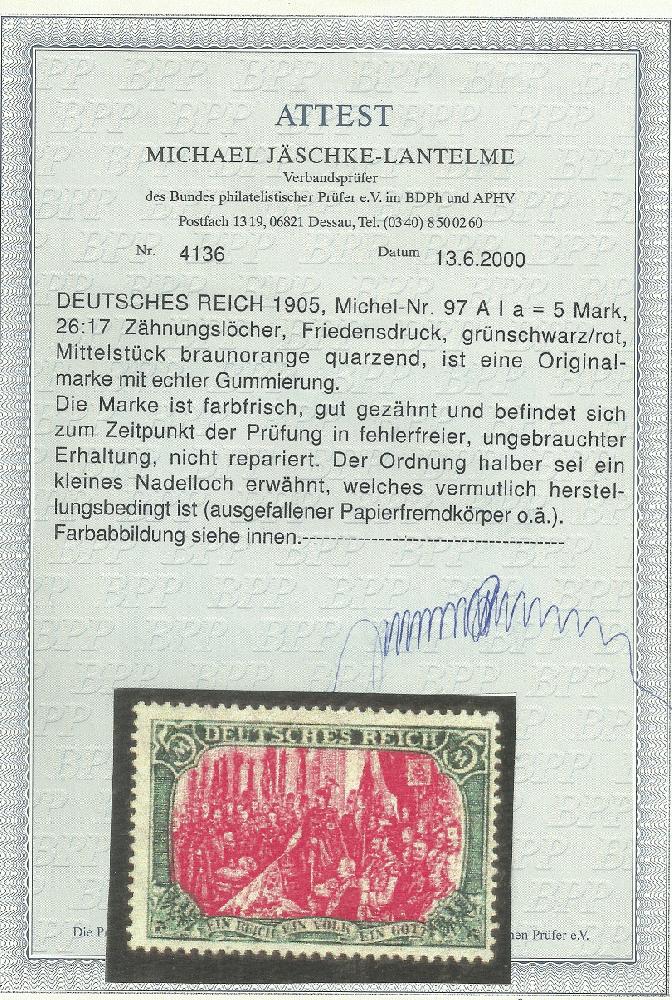 | Prüfgebiet: | Deutsches Reich 1871 - 1918 (Mi-Nr. 1 - 106) |