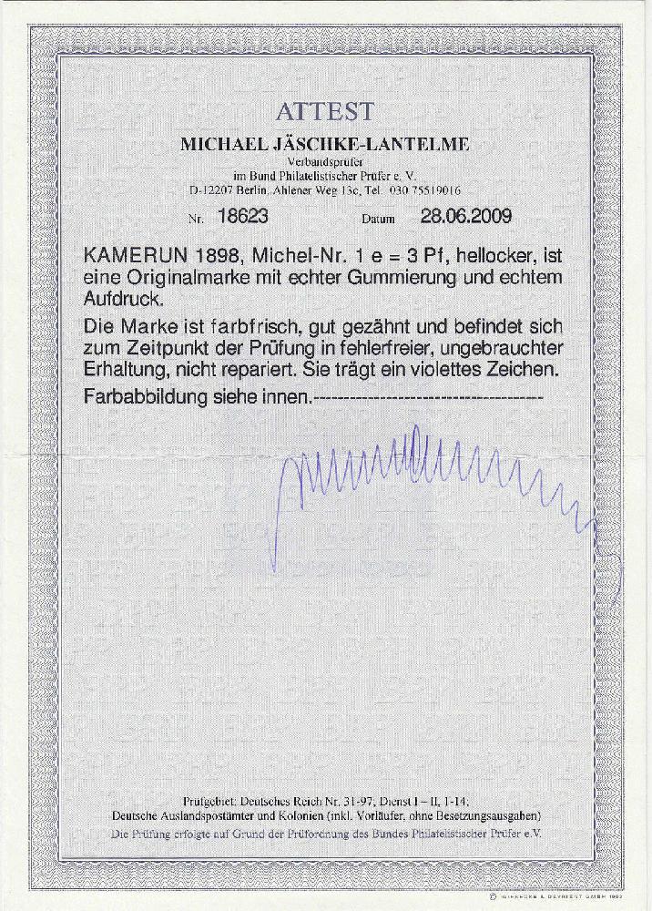 | Prüfer: | Jäschke-Lantelme, Michael (BPP (Bund Philatelistischer Prüfer)) |
