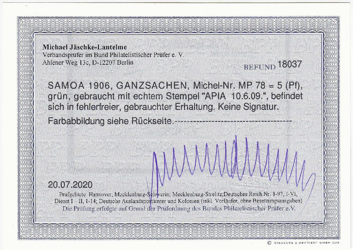 | Prüfer: | Jäschke-Lantelme, Michael (BPP (Bund Philatelistischer Prüfer)) |