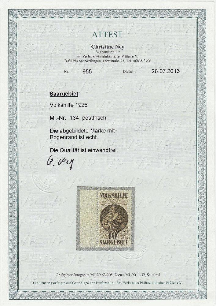| Prüfgebiet: | Saargebiet (Mi-Nr. 1 - 205) |