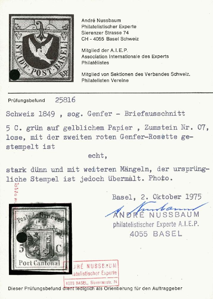| Prüfer: | Nussbaum, André (SBPV / ASEP (Schweizerischer Briefmarken-Prüfer-Verband)) |