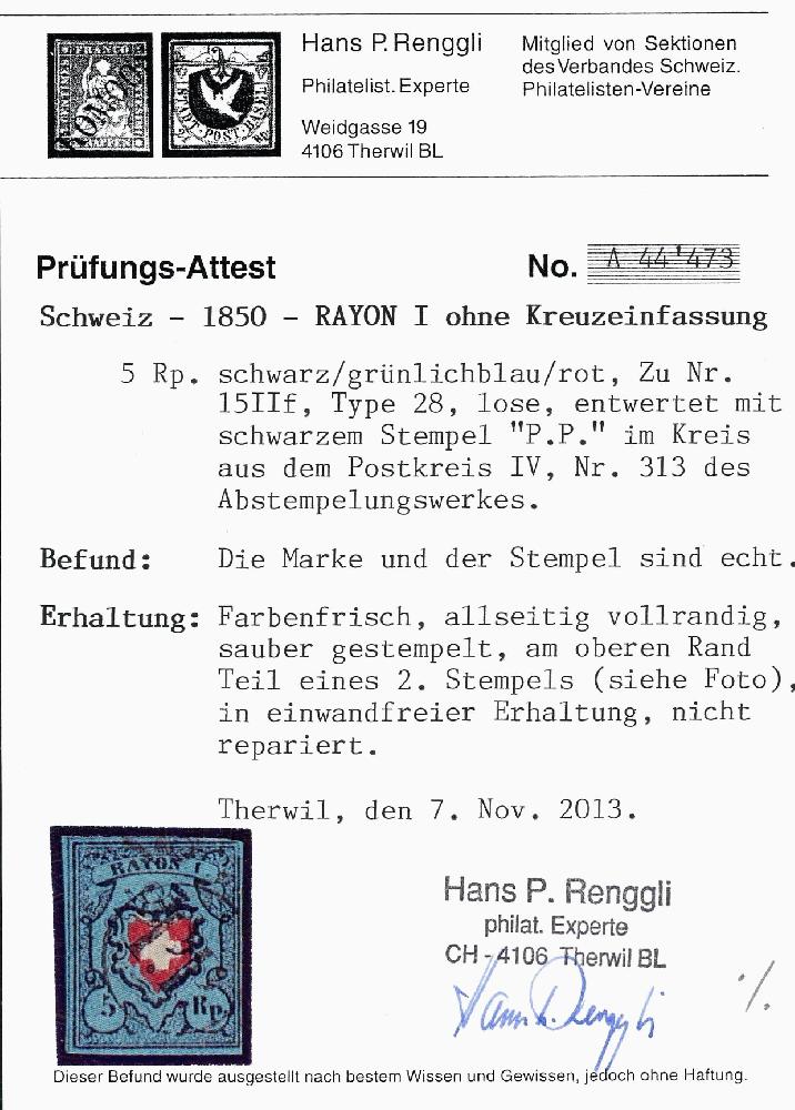 | Prüfer: | Renggli, Hans P. (SBPV / ASEP (Schweizerischer Briefmarken-Prüfer-Verband)) |