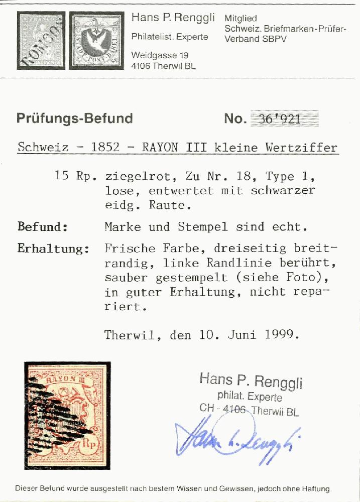 | Prüfer: | Renggli, Hans P. (SBPV / ASEP (Schweizerischer Briefmarken-Prüfer-Verband)) |
